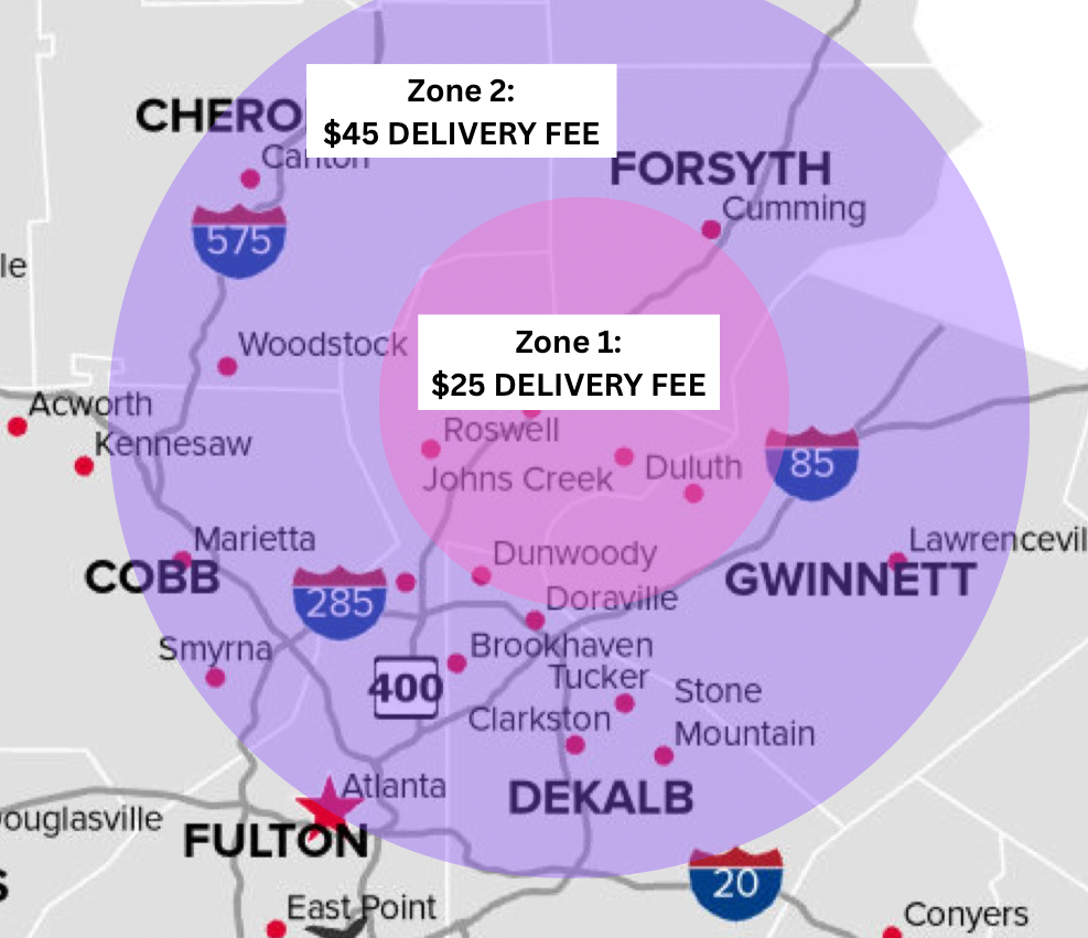 NOTE: Please verify your delivery zone on the map and add your zone below accordingly.